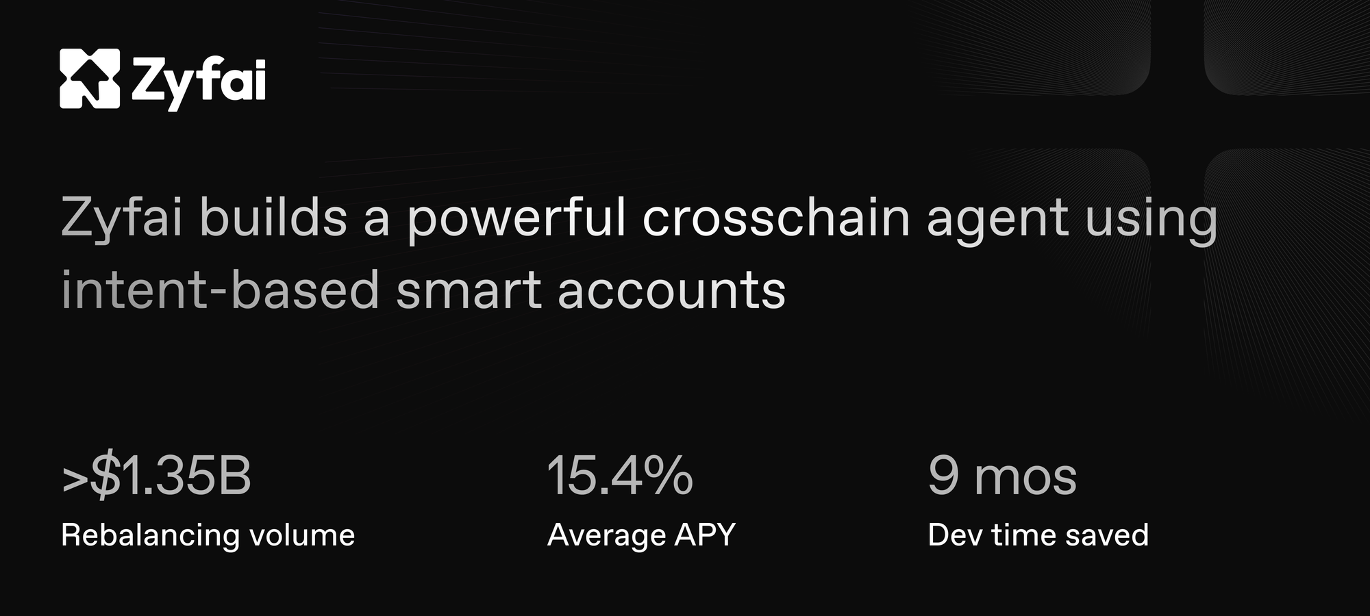 With Rhinestone, Zyfai has built a market-leading yield agent that consistently achieves crosschain APYs of over 15%, outperforming competitors without compromising on full self-custody.
